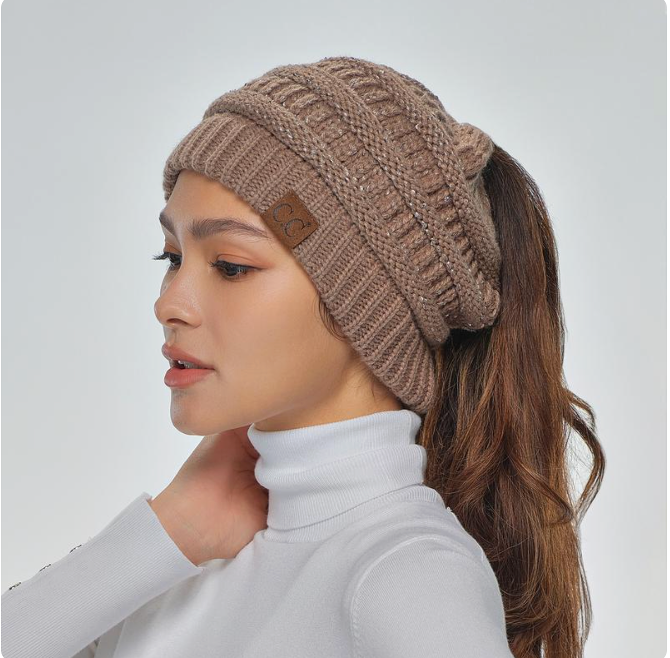 Stay warm without sacrificing your style. This ultra-soft, breathable knit beanie is designed with a flexible ponytail opening that lets you wear your hair your way—high ponytail, low ponytail, or messy bun—while still keeping your head perfectly cozy.